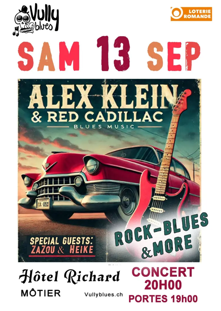 Alex Klein ist vor allem eine markante Stimme der Schweizer Musikszene – und ein talentierter Gitarrist mit fast 50 Jahren Bühnenerfahrung. Seine Leidenschaft gilt dem Blues, dem Chicken Picking und allem, was den unverkennbaren Twang-Sound trägt. Mit einem traditionellen Repertoire und musikalischer Authentizität tritt der Wahl-Freiburger in der ganzen Schweiz, in Europa und in den USA auf – unter anderem in Nashville, New Orleans und Texas. Als Singer-Songwriter hat er vier Alben und vier Singles in Nashville (Tennessee) produziert – einer Stadt, mit der ihn über die Jahre eine echte musikalische Liebes- geschichte verbindet. Unterstützt von den hervorragenden Musikern Cédric Gander am Schlagzeug und Peter Kalkix am Bass, verspricht sein Projekt Red Cadillac kraftvollen Rock-Blues im Geist der Power-Trios der 60er-Jahre.